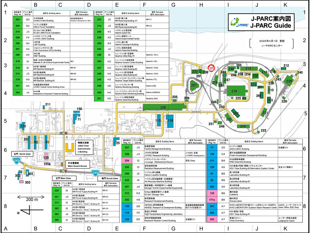 | J-ラウンジ(レストハウス) | 254:I3 | 平日 11:30-13:30 MLF脇の駐車場から、道路を挟んで反対側にあります。 弁当、カップ麺、飲み物等の販売、自動販売機 |